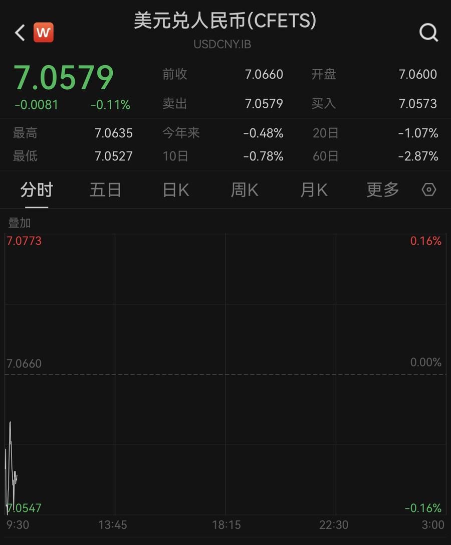 9月20日,人民币对美元即期汇率开盘报7.0600,随后升破这一关口至7.0527,较前一交易日升值超百点,续创2023年5月底以来的新高。